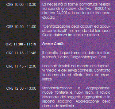 Tutti questi temi saranno trattati con la collaborazione di AGENAS ed AVCP, nonchè di professionisti sanitari ed amministrativi provenienti da varie realtà Toscane e del resto d'Italia.